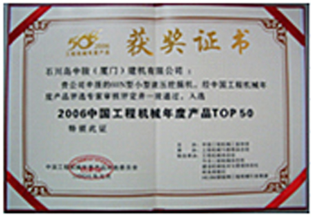 60N型液压挖掘机入选“2006中国工程机械年度产品TOP50”